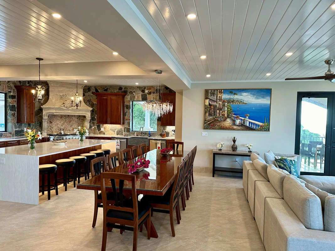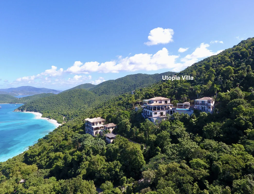 **Utopia Villa - Peter Bay** (formerly known as Areca Villa) is an incredibly private tropical haven that stands as a true masterpiece. Perched high above Peter Bay, it offers sweeping 180-degree views of the Caribbean, stretching from St. Thomas to Tortola, with countless cays and islands dotting the horizon. The villa's lush, professional landscaping, expansive outdoor living spaces, and fully a...